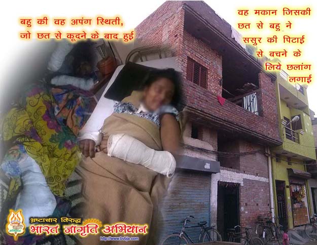 जो ससुर द्वारा दी गई शारीरिक उत्पीड़न से बचने के लिये दूसरी मंजिल